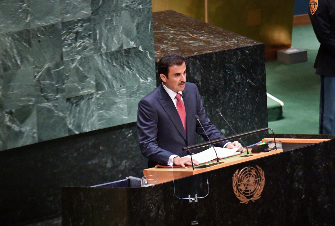 سمو الأمير يشارك في الجلسة الافتتاحية للمناقشة العامة للدورة الـ74 للأمم المتحدة٢٤ سبتمبر ٢٠١٩شارك حضرة صاحب السمو الشيخ تميم بن حمد آل ثاني أمير البلاد المفدى، في الجلسة الافتتاحية للمناقشة العامة للدورة الرابعة والسبعين للجمعية العامة للأمم المتحدة التي بدأت أعمالها اليوم بمقر المنظمة في مدينة نيويورك، وذلك بحضور عدد من أصحاب الفخامة والمعالي والسعادة قادة الدول ورؤساء الحكومات ووفود المنظمات الحكومية، والإقليمية والدولية وهيئات المجتمع المدني.